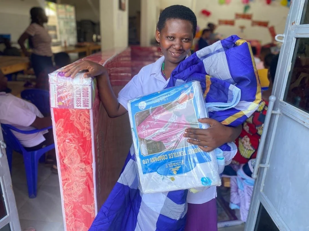 Christmastime in Oruchinga! New mattresses and blankets for our team.