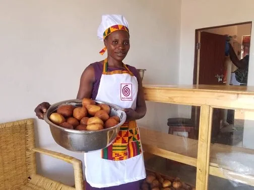 “My name is Janet Mukarukundo, 26 years old, a refugee from Rwanda. I’m so happy to be part of the bakery. I have learnt how to bake. To be honest my life is not the same compared to how I was before I joined the bakery program. I can now send my son to school and pay school fees because of the monthly allowance that I receive. I get so much satisfaction when we distribute bread to the hungry children in the communities. I am a mother and i know how it feels to have a hungry child. Long live ADAMÂ because you are saving lives.”